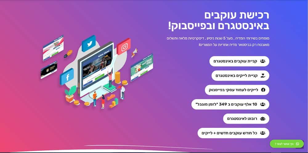 השירותים שלנו כוללים קניית עוקבים באינסטגרם,קניית לייקים באינסטגרם,לייקים לעמוד עסקיי בפייסבוק ורובוט לאינסטגרם.
