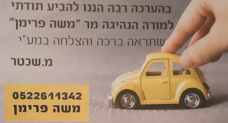 לימוד על רכב ידני ואוטומט,גם באנגלית, נסיון של הרבה שנים, עסק משפחתי עזרה בלימודי התאוריה,לימוד גם לקשב וריכוז, פחדים, רענון נהיגה,ושיפור מיומנות הנהיגה.