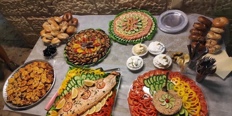 מבחר מגשי ירקות וסלטים, גבינות משובחות מגשי אנטיפסטי, מגוון סלטים חיים, דגים מעושנים ורטבים פיקנטיים, מגשי פלטות חמות פשטידות פסטות פיצות לזניה ומרקים. מתמחים בעמדות פיצה, עמדות קינוחים, עמדות סושי ועוד. הולי בייגל סניף מודיעין הינו מזנון בסגנון אמריקאי המגיש מגוון כריכים, ארוחות בוקר, לזניות, קישים, סלטים בהרכבה עצמית ועוד. בנוסף, מגישים קפה אספרסו בבלנד הנקלה במיוחד לסניף וכמו כן קינוחים.