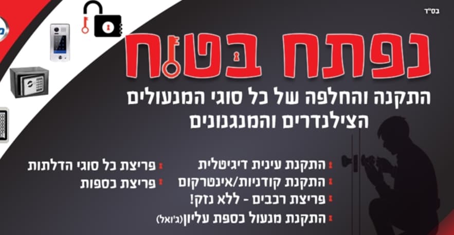 שלומי המנעולן בשבילך! נמצא בתחום מעל ל-7 שנים. עובד בצורה מקצועית, אחראית נקייה ומוסדרת! שירות מהלב ! שירות פריצה לכל הדלתות והמנעולים. פתיחת רכבים ללא נזק, פריצת כספות. התקנת קודנית/ אינטרקום, התקנת מנעול רתק/ כספות. שירות תיקונים והתקנה. מחירים הוגנים לכל כיס