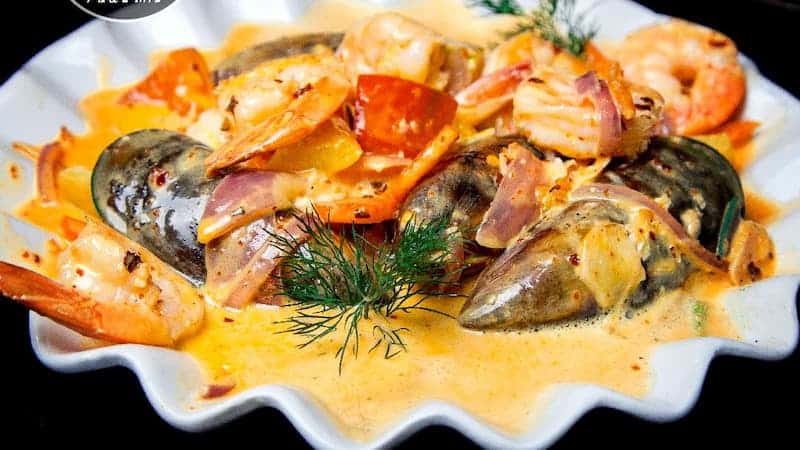 פרות ים וגריל. מסעדת שף. מטבח שף.